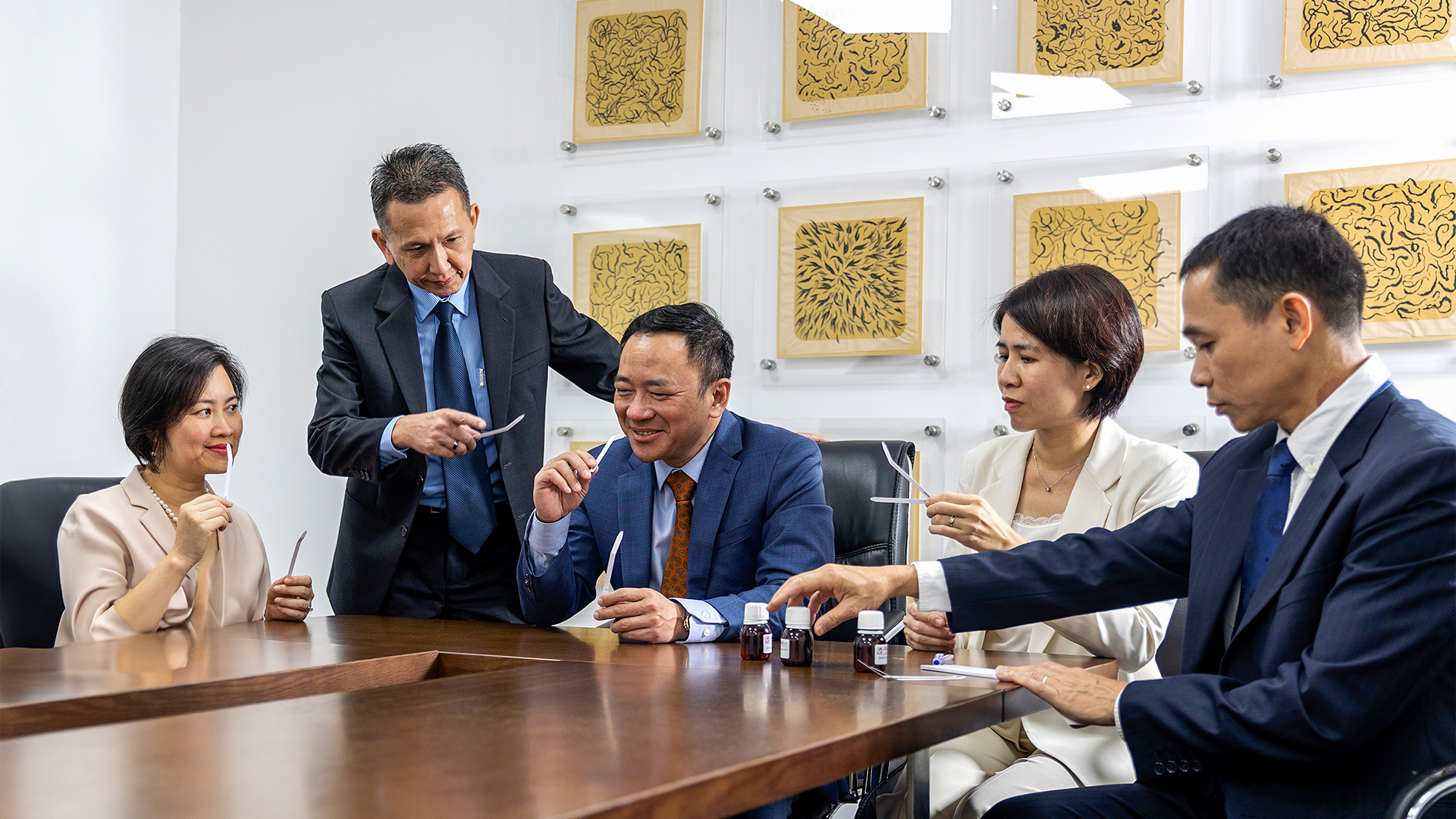 Ban Giám Đốc và Phòng Kinh Doanh luôn đánh giá chất lượng mẫu hương cho phù hợp trước khi gửi mẫu tới khách hàng. Mục đích của chúng tôi là gửi những mẫu hương thích hợp nhất đối với sản phẩm và thị hiếu của khách hàng. Chúng tôi luôn cộng tác chặt chẽ với khách hàng để nghiên cứu mẫu hương trong các dự án hiện tại cũng như để phát triển những dự án mới nhằm cho ra đời những sản phẩm mới phù hợp với nhu cầu của thị trường.